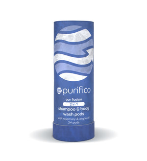 Purifico pods hold their shape using water-soluble films made of polyvinyl alcohol (PVOH) that are colorless, odorless, non-toxic and biodegradable—meaning, they dissolve in water and are then consumed by bacterial micro-organisms. We chose PVOH to create our pods because it doesn’t contaminate recycling streams or contribute to micro-plastic pollution. It’s so safe in fact, that this same film is also used for food-grade products.